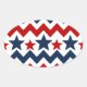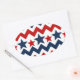 Pegatina Ovalada Estrellas y rayas de chevron azul rojo divertido