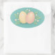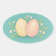 Pegatina Ovalada Felices huevos de Pascua y flores amarillo pálido