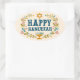Pegatina Ovalada FELIZ HABITACIÓN DE HANUKKAH floral Festividad jud