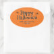 Pegatina Ovalada Feliz Naranja de Halloween Spider Cobweb