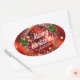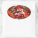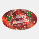 Pegatina Ovalada Feliz Navidad, deslumbrante diseño rojo y dorado