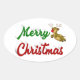 Pegatina Ovalada Feliz Navidad Flying Reindeer guión verde rojo