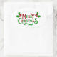 Pegatina Ovalada Feliz Navidad Green y Red Holly Gráfico