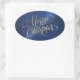 Pegatina Ovalada Feliz Navidad Oro y azul Grabado en relieve look