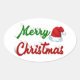 Pegatina Ovalada Feliz Navidad Santa Hat rojo green script