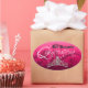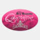 Pegatina Ovalada Fiesta de Mi Quinceañera Sparkling Tiara (fuschia)