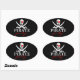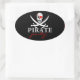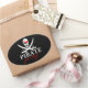 pegatina de esqueleto pirata "Fiesta pirata". Un fondo negro con un cráneo pirata- tiene un parche para los ojos rojos. Perfecto para fiestas de cumpleaños para niños, bolsas de regalo o fiesta. También se utiliza en la reserva de chatarra. SI CAMBIA LA FORMA DEL PEGATINA: AJUSTE LA IMAGEN Y EL TEXTO PARA QUE SE AJUSTEN A LA FORMA. MANTÉNGASE DENTRO DE LAS LÍNEAS DE PUNTO ROJO.