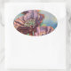 Pegatina Ovalada Flores de amapola roja naranja púrpura acuarela
