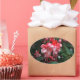 Pegatina Ovalada Flores de fucsia rojas y blancas en el jardín