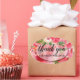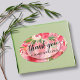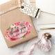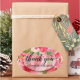 Gracias a usted y su nombre sobre un fondo de peonías escarlatas y crema, estas pegatinas están listas para personalizar para los regalos de la fiesta de despedida de soltera, pegatinas para sobres y más. La fuente y el tamaño de la fuente para el nombre se pueden modificar, simplemente haga clic en el enlace Personalizar más.