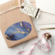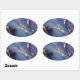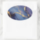 Pegatina Ovalada Fondo azul con rachas y puntos dorados