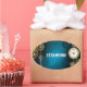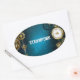 Pegatina Ovalada Fondo turquesa de vapor con engranajes