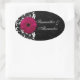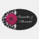 Pegatina Ovalada Fuchsia Scroll Gerbera Daisy con negro y blanco