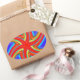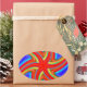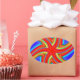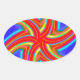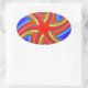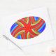 Un diseño o patrón geométrico atractivo predominantemente en tonos rojos y azules, pero también con amarillo, cian, púrpura y verde.