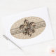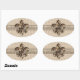 Pegatina Ovalada Golden Fleur De Lis con el patrón de damasco crema