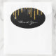Pegatina Ovalada Gracias Boda de nombres Black Gold Drips