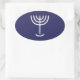 Pegatina Ovalada Gráfico de oro de la Marina Blanca Menorah moderna