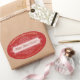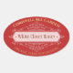 Vintage filigree o flourish design a lo largo de un fondo rojo y una cinta en el centro con texto personalizado para el tipo de miel o cualquier producto alimenticio, huerto o apiario, año establecido, descripción o información de contacto y peso neto. Elija los pegatinas rectangulares para mostrar dos abejas en la esquina.
