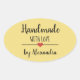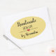 Pegatina Ovalada Hecho a mano con amor amarillo moderno