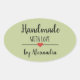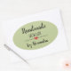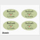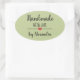 Pegatina Ovalada Hecho a mano con el amor verde moderno