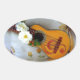 Hermosa guitarra acústica nota de música tela de lino blanco tela naranja flores amarillas flor blanco fresco efectos de impresión