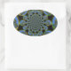 Pegatina Ovalada Hermoso arte fresco azul real negro Kaleidoscope