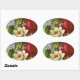 Pegatina Ovalada Hermoso Bouquet Romántico de Verano con Rosa Roja