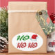Pegatinas con ho ho ho in 3D texto verde y rojo y un gorra de Santa Claus. Hay pegatinas disponibles en varias formas.