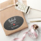 Moderno pegatina "horneado con amor" con un tipo de letra blanca sobre un fondo negro de pizarra adornado con un bonito corazón. Texto personalizado.