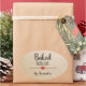 Moderno pegatina "horneado con amor" con una fuente negra en un fondo de papel Kraft adornado con un lindo corazón rojo. Texto personalizado.