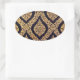 Pegatina Ovalada Impresión contemporánea tradicional de Damasco neg