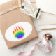 Pegatina Ovalada Impresión de la hoja del oso arcoiris