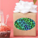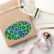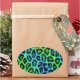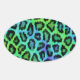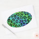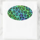 Pegatina Ovalada Impresión De Leopardo Azul Y De Mint