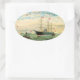 Ilustracion de viajes de vintage que promueve la Compañía de Vapor Inman, mostrando un temprano barco de vapor de un diseño de transición con manipulación de velas junto con chimeneas.