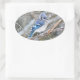 Pegatina Ovalada Jay azul en una tormenta de nieve