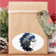 Pegatina Ovalada Jefe nativo americano con cabeza roja