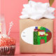 Un elfo lindo o conocido como la ayudante de santa. Vestido con un traje verde y gorra. Una gran agrupación de regalos festivamente envueltos a su alrededor. Personalizar como se desee.