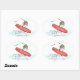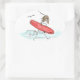 Las vacaciones de verano están aquí y este adorable surfista de palos se dirige a la playa. En un momento de prisas en la orilla, con una tabla de surf en el brazo, la vida es buena.