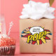 Personalizar con el nombre de la futura madre. Un divertido, fresco y moderno libro de historietas retro, inspirado en el arte pop, ducha de bebé, rociado o pegatina revelar que pone el wham, zap, a cualquier superhéroe que mamá sea o evento de celebración de parejas. Diseñado por ComicBookPop© en www.zazzle.com/comicbookpop