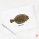 Este pegatina conmemora el flounder de verano oe fluke, uno de los peces de agua salada más populares capturados a lo largo de la costa atlántica de los Estados Unidos. Estos flounder bien camuflados yacen en el fondo y emboscan a los peces cebo, crustáceos y otras presas. A veces se les llama felpudos de verano.