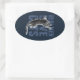 Pegatina Ovalada Los hombres reales aman gatos de acero azul