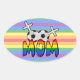 Pegatina Ovalada Madre del fútbol lesbiana (con arco iris)