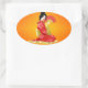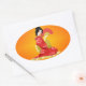 Pegatina Ovalada Magnífica japonesa vestida de rojo