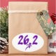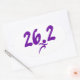 Maratón morado 26.2 con símbolo de punto en marcha.