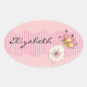 Este diseño tiene una gran mariposa rosada y una flor de cerezo sobre un fondo rayado rosado.