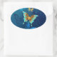 Pegatina Ovalada Mariposas doradas sobre fondo azul