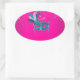 Pegatina Ovalada Mascarada rosa caliente y azul Verde azulado