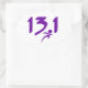 Media maratón morada 13.1 con símbolo de punto en marcha.