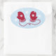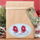 Pegatina Ovalada Mitones rojos y copos de nieve