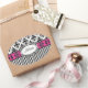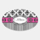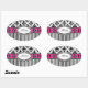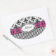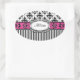 Pegatina Ovalada Moda París Damasco rosa y negro y franjas